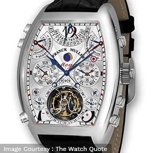 The wristwatch is enclosed with the Cintrée Curvex™ case in 18 karat gold. It took Franck Muller full five years of research and development before he could create the first watch which was released to the American collector, Michael J. Gould, who paid a hefty sum of USD 2.7 million dollars and flew to Monaco for the watch.