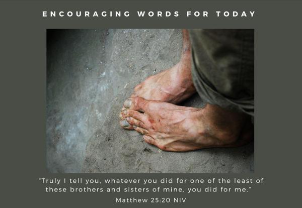 That’s when I recognized him! It was like a voice whispered in my mind, “Truly I tell you, whatever you did for one of the least of these brothers and sisters of mine, you did